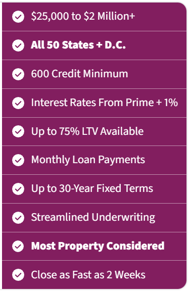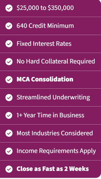 If you’re interested in an affordable business loan that is NOT an MCA or SBA financing, is fixed-rate, long-term, low documentation, and closes quickly, then you’ve come to the right place.